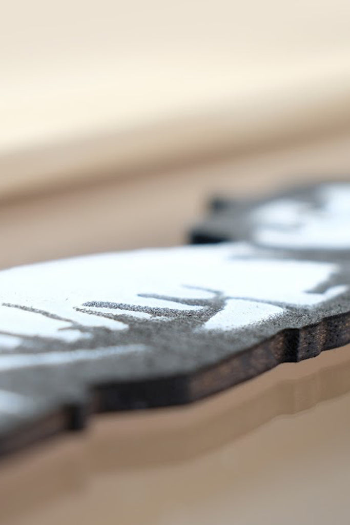 This artwork is part of a limited series of handcrafted Stencil Art created by Sabrina Rocca. Each piece is produced using spray paint on paper and on a shaped wooden panel mounted on glass, combining graphic precision with a spontaneous, expressive gesture.